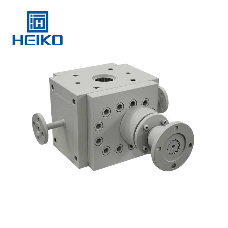 熔体泵的生产特点:熔体泵采用整体淬火技术,采用高耐磨、耐腐蚀的高温合金钢材料,在标准型系列熔体泵的基础上,加强了泵体的设计参数,如高扭矩、低剪切要求、高耐腐蚀要求(含氟制品)。优化了泵体的自润滑系统、进出口流道和齿轮结构。使材料在泵体内停留时间更短,防止泵体齿轮死角,适用于PC、PMMA、PVC等高光洁度、高透明度要求的产品和热敏性材料的挤出。
